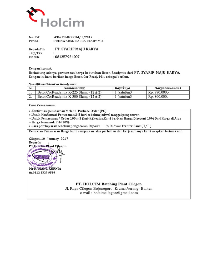 Harga beton cor terbaru : Kami bekerja sama dengan seluruh plant ready mix di. Harga ready mix jakarta, bogor, depok, tangerang, bekasi, karawang, cilegon,bandung, jawa barat dan sekitarnya pusat ready mix jayamix, holcim, adhimix harga ready mix yang besar lebih murah dari pada minimix karena mobil besar memuat lebih banyak beton ketimbang mobil minimix ( kecil ). Pihak pembeli bertanggung jawab terhadap tersedianya jalan yang layak, keamanan dan dapat dilalui truck mixer menuju proyek. Segera wujudkan proyek hebat anda bersama kami.